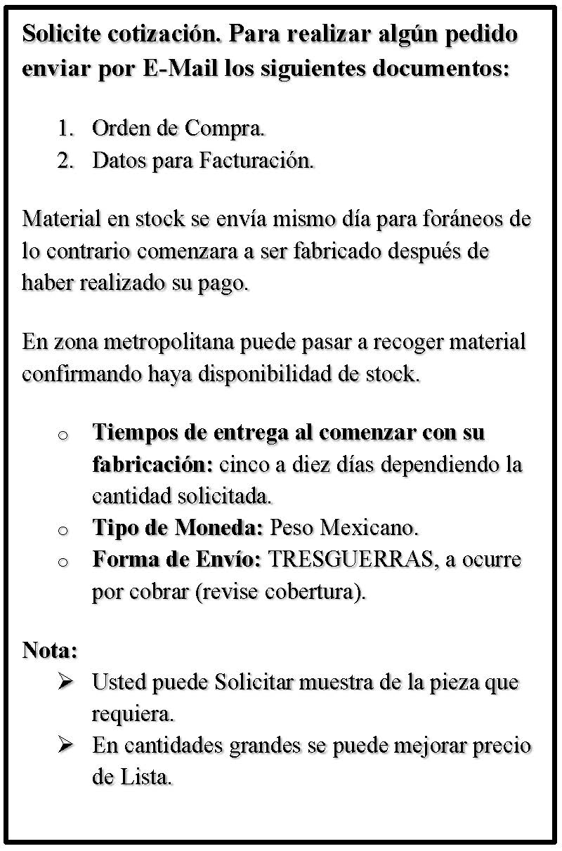 Somos una microempresa Mexicana dedicada a la Comercialización y Manufactura de piezas industiales para el uso que usted requiera;